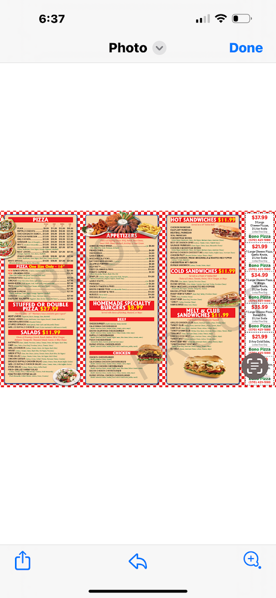 Bono Pizza’s stuffed pizzas are a must-try, with options like the Stuffed Meat Lovers (16"), Stuffed Veggie Lovers (16"), and Stuffed Chicken & Broccoli (16"). These indulgent pizzas are perfect for sharing with family or friends.